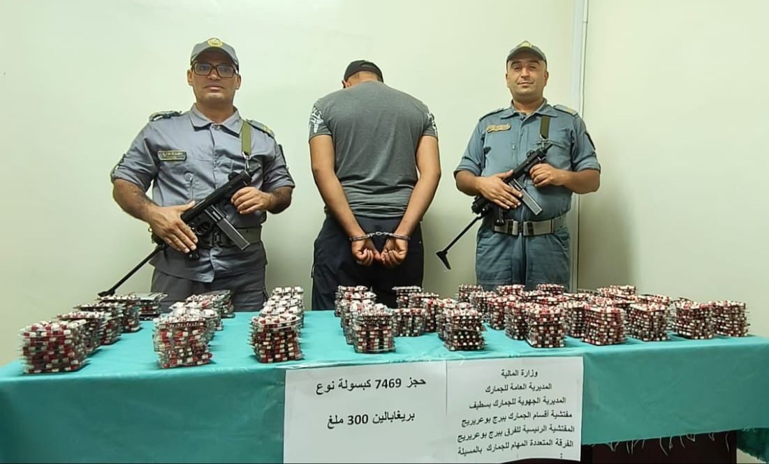 في إطار المهام الحمائية المنوطة بجهاز الجمارك الجزائرية، وكذا الجهود الميدانية المتواصلة لوحداته العملياتية، تمكن أعوان الفرقة المتعددة المهام للجمارك بالمسيلة التابعة لمصالح مفتشية الأقسام للجمارك ببرج بوعريريج، بإقليم اختصاص المديرية الجهوية للجمارك بسطيف، من إحباط محاولة تهريب بضاعة محظورة تمثلت في 7469 قرص مهلوس من نوع بريغابالين (300 ملغ) ، تم ضبطها إثر تفتيش دقيق لسيارة سياحية، كما تم حجز سيارة سياحية استعملت في التهريب، مع توقيف المخالف وتقديمه أمام الجهات القضائية المختصة.