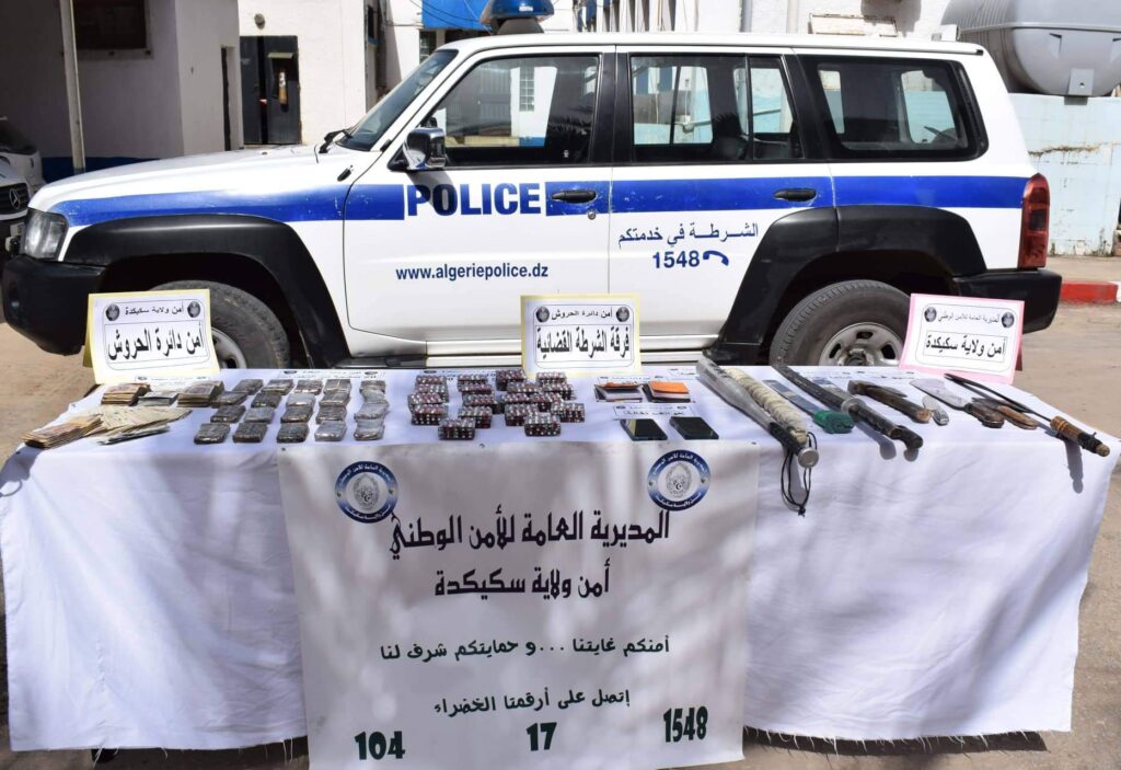 تمكنت فرقة الشرطة القضائية بأمن دائرة الحروش في عملية نوعية من الإطاحة بشبكة إجرامية تتكون من 08 أشخاص تتراوح أعمارهم مابين 20 و39 سنة تنشط في مجال ترويج المخدرات و المؤثرات العقلية .