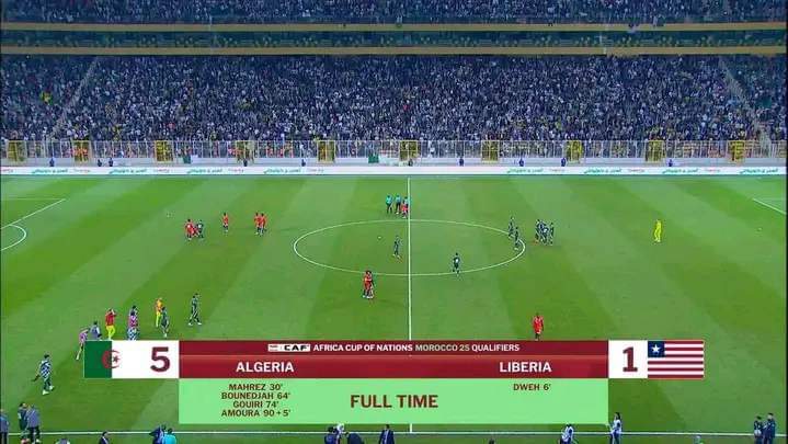 ختم المنتخب الوطني لكرة القدم، اليوم الأحد، تصفيات كأس أمم إفريقيا 2025 بأداء باهر ونتيجة عريضة (5-1) على أرضية ملعب المجاهد الراحل حسين آيت أحمد أمام ليبريا.