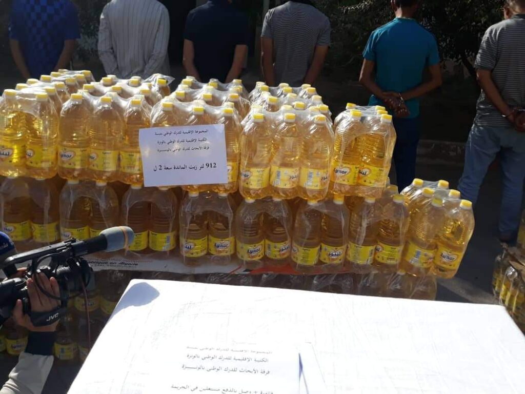 تمكنت فرقة الابحاث للدرك الوطني بالونزة في اطار مكافحة كل مظاهر الاجرام وتنفيذا لتعليمات القيادة الرامية الى مجابهة ظاهرة المظاربة الغير مشروعة بالمواد الغذائية المدعمة واسعة الاستهلاك من توقيف ستة (06) اشخاص تتراوح اعمارهم مابين 25 و48 سنة بتهمة إرتكاب جناية المضاربه الغير مشروعه في مواد غذائية مدعمة جنحة ممارسه التجاره الخارج عن موضوع السجل التجاري بالاضافة الى الوضع للبيع مواد منتهيه الصلاحيه التزوير في المحررات التجاريه والمصرفيه.
