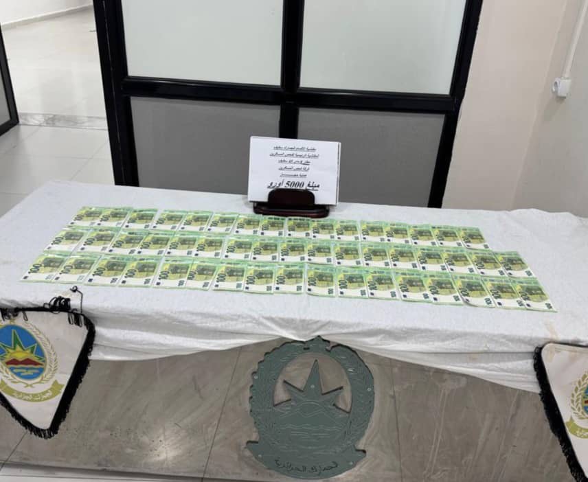 في إطار ممارسة مهام الرقابة الجمركية على الحركة الحدودية للمسافرين عبر الرحلات الدولية من وإلى أرض الوطن، تمكن أعوان المفتشية الرئيسية لفحص المسافرين على مستوى مطار سطيف الدولي “08 ماي 1945″، التابعة لمصالح مفتشية الأقسام للجمارك بسطيف، بإقليم اختصاص المديرية الجهوية للجمارك بسطيف، من حجز مبلغ مالي من العملة الأجنبية، غير مصرح به، قدر بــــ 5000أورو،كانت بحوزة مسافر عبر رحلة جوية قادمة من مطار ليون- فرنسا.