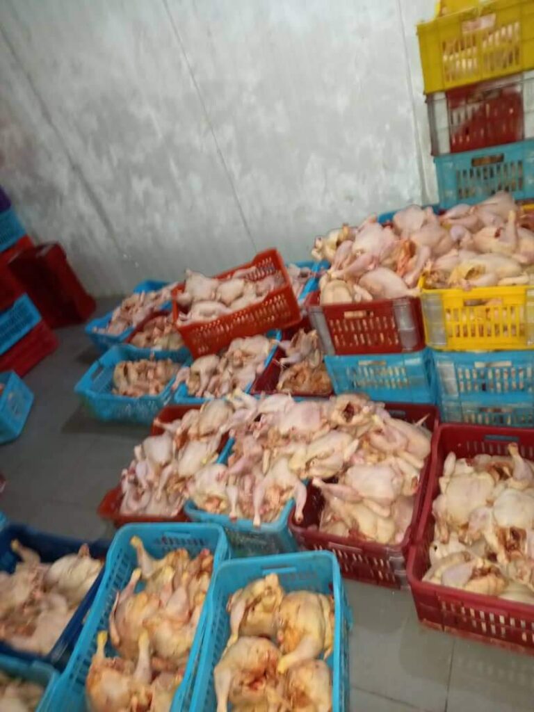 حفاظا على صحة المواطنين وسلامتهم تم حجز من طرف أفراد فرقة الأمن والتحري للدرك الوطني كمية من اللحوم البيضاء الفاسدة تمثلت في 757.8 كلغ من الدجاج الفاسد. بنقاوس.